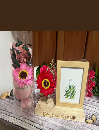 CUPULA CON FLOR DE GYPSOPHILA (ROSA Y GIRASOL)
