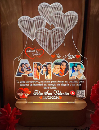 Para este San Valentín te traemos está linda opción de regalo ❤️ Lámpara led personalizada, incluye: Base de madera con control remoto
