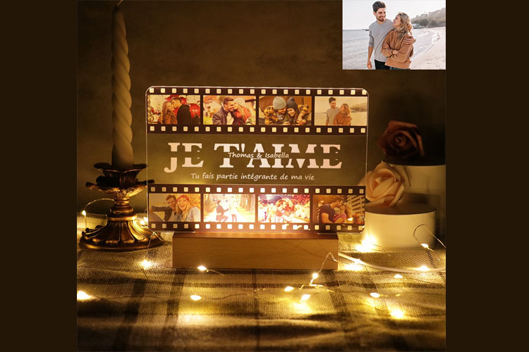 Lámpara fotográfica personalizada con nombre y texto - TE AMO